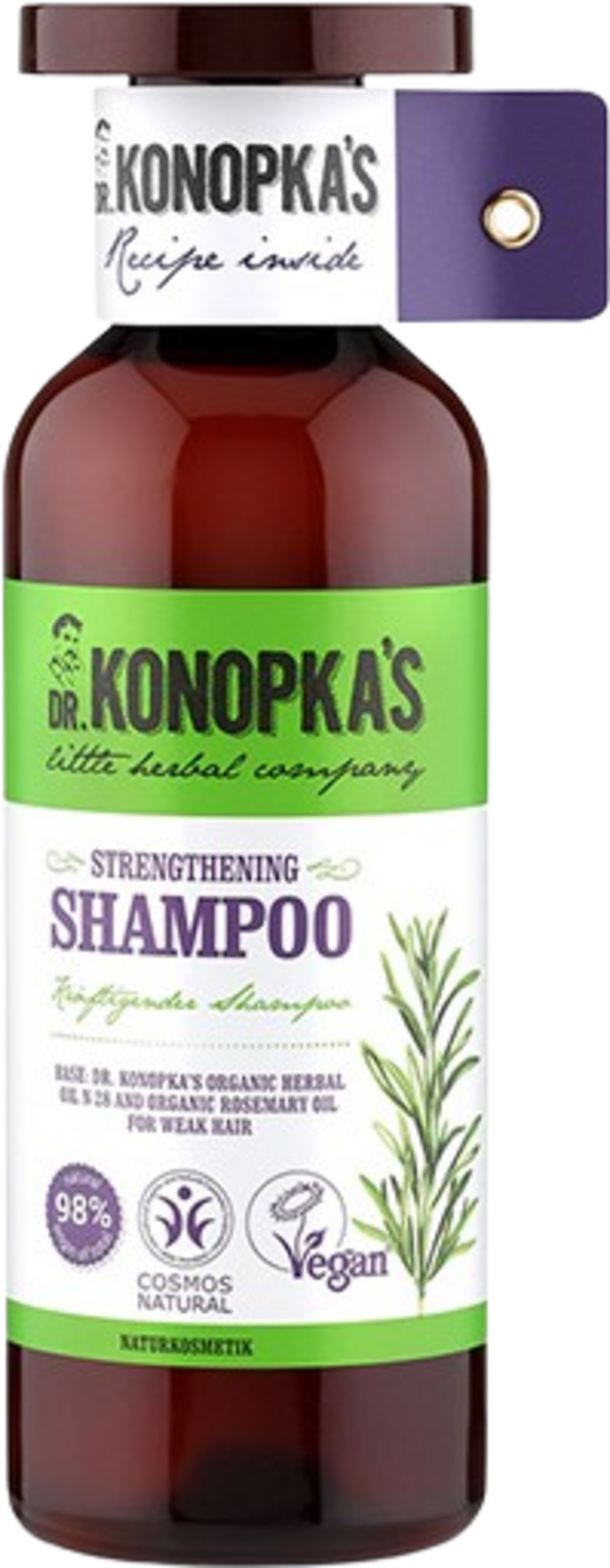 Ovaj šampon za jačanje njeguje slabu, tanku kosu biljnom esencijom Dr. KONOKPA'S br. 28 i organskim uljem ružmarina. Također pruža sjaj i elastičnost.