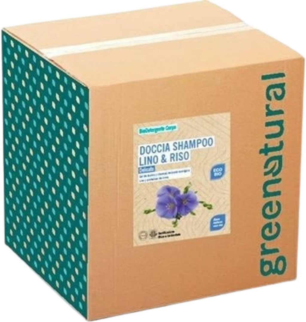 Greenatural 2u1 blagi šampon i gel za tuširanje s lanom i rižom, 10 kg
