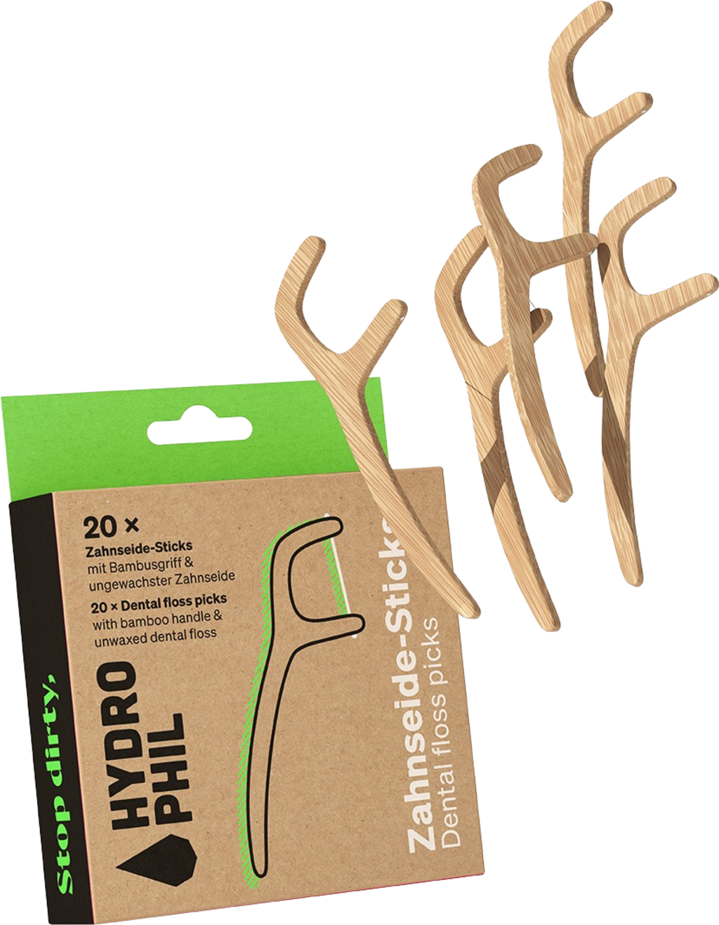 Uz ekološki zubni konac marke Hydrophil higijena zuba postaje dječja igra. Posebno je jednostavan za upotrebu i bez napora uklanja ostatke hrane i naslage. Zubni konac izuzetno je otporan na kidanje, a bambusova drška je potpuno bez plastike. Ekološka higijena zuba pogodna i za odrasle i za djecu.