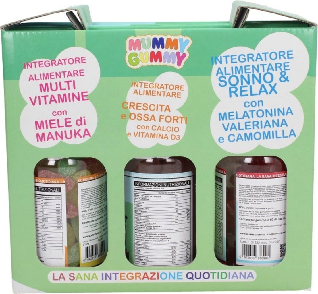 Ovaj set brenda Mummy Gummy sadrži 3 bočice vitaminskih voćnih gumenih bombona, posebno razvijenih za djecu. Set sadrži sljedeće gumene bombone: