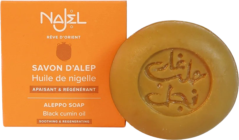 Aleppo sapun s uljem crnog kima poboljšava kvalitetu kože zatežući je i tako podržava očuvanje njezine ljepote. Kombinacija ulja masline, lovora i crnog kima daje ovom sapunu antiseptička i protuupalna svojstva, koja su posebno pogodna za smirenje nadražene kože.