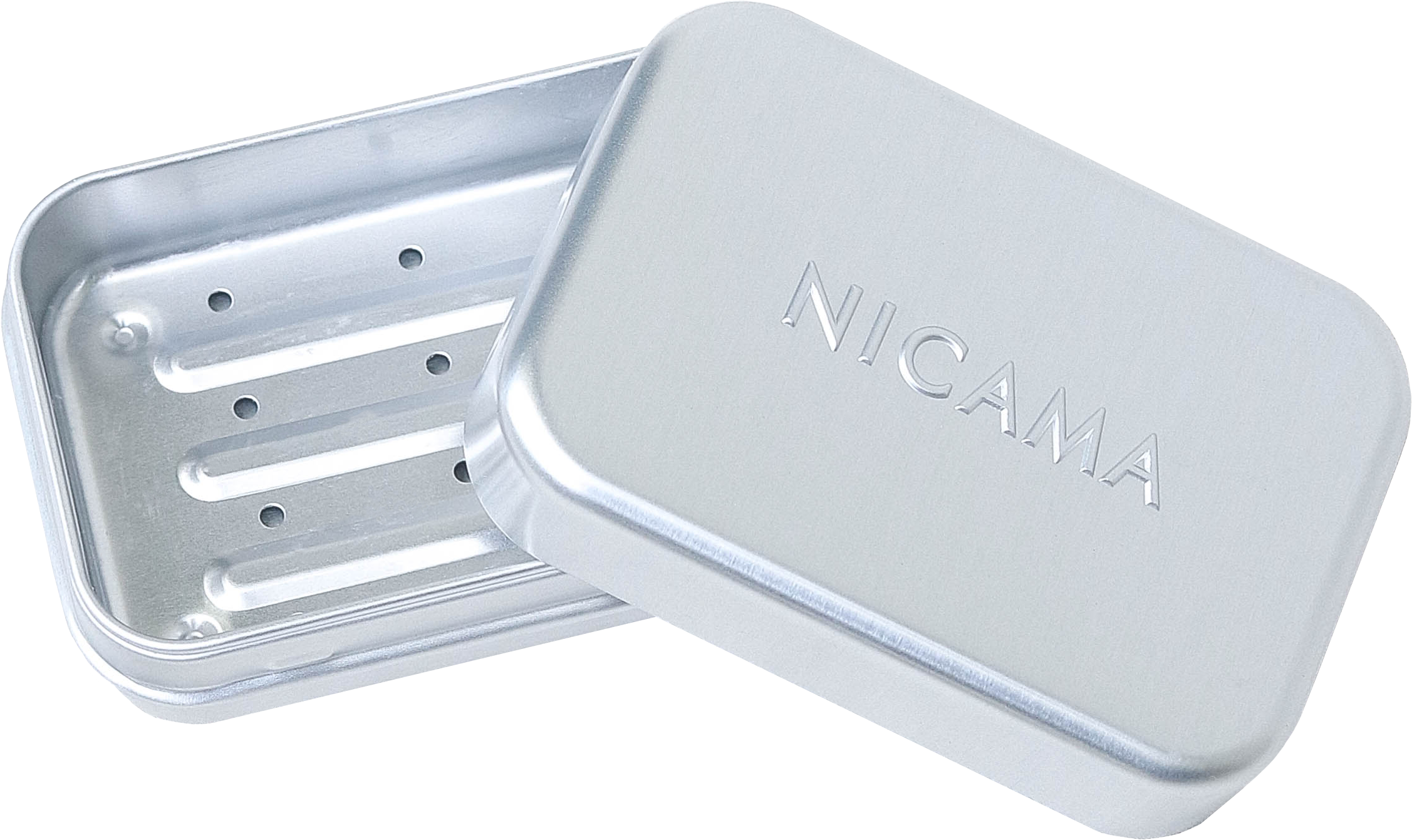 I NICAMA-ini sapuni za tuširanje i reciklirani sapuni stanu u ovu posudu za sapun s poklopcem na pritisak. Izrađena je od aluminija i ima uklonjivu posudu za kapanje koja sprječava da sapun ostane u vlastitoj otopini sapuna i ošteti se.