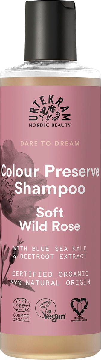 Nježni šampon od divlje ruže idealan je za nježno čišćenje obojene kose i sprječavanje blijeđenja boje. Blaga formulacija na bazi šećernih tenzida omogućuje posebno nježno pranje kose. No, to nije sve, obalni morski kelj i ekstrakt cikle štite boju kose i čuvaju njezin sjaj. Omotan u nježan miris divlje ruže, šampon ne samo da mazi kosu, već i opušta dušu i poziva na sanjarenje.