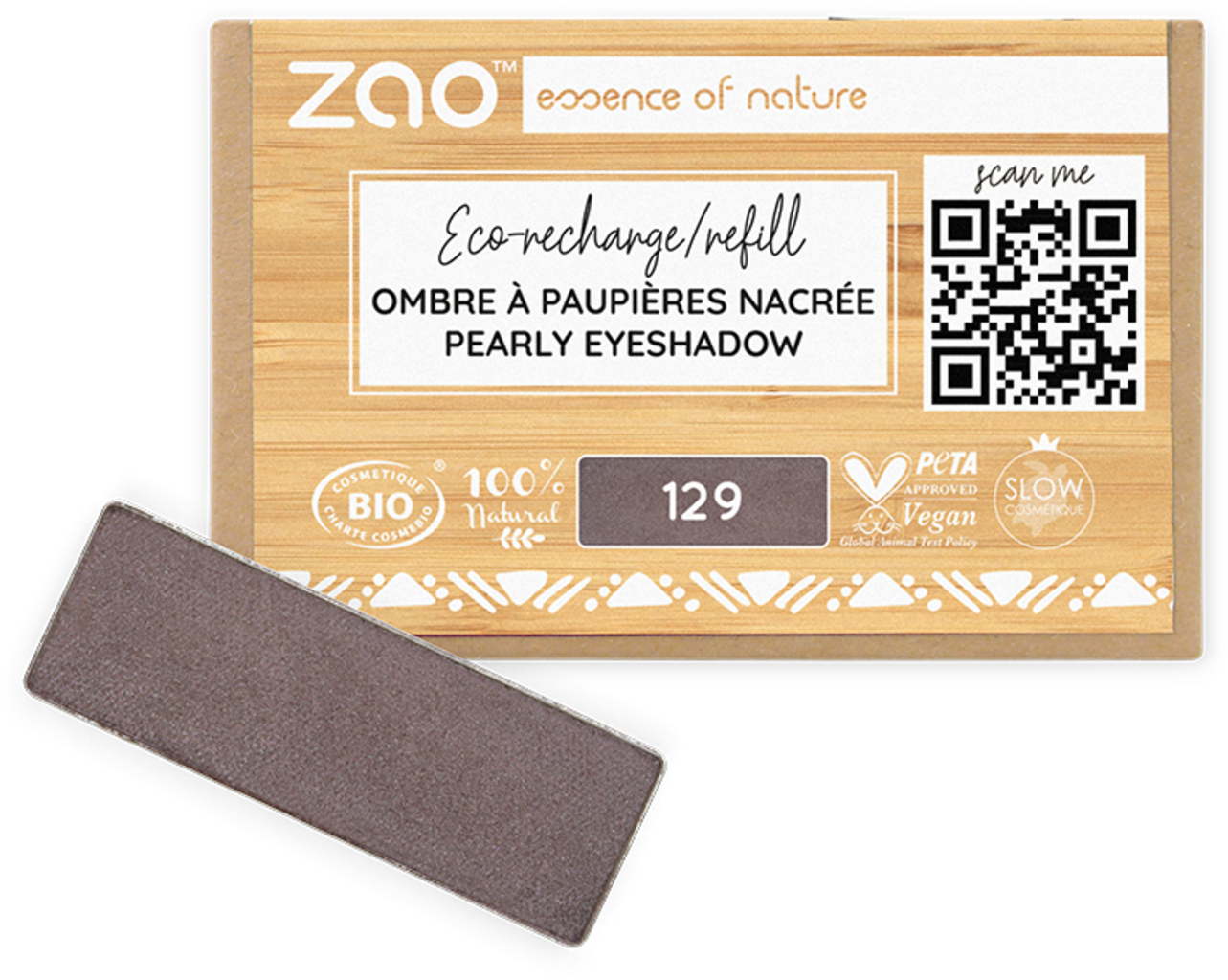 Zao Refill Rectangle Eye Shadow, 129 Pearly Taupe (1,30 g)